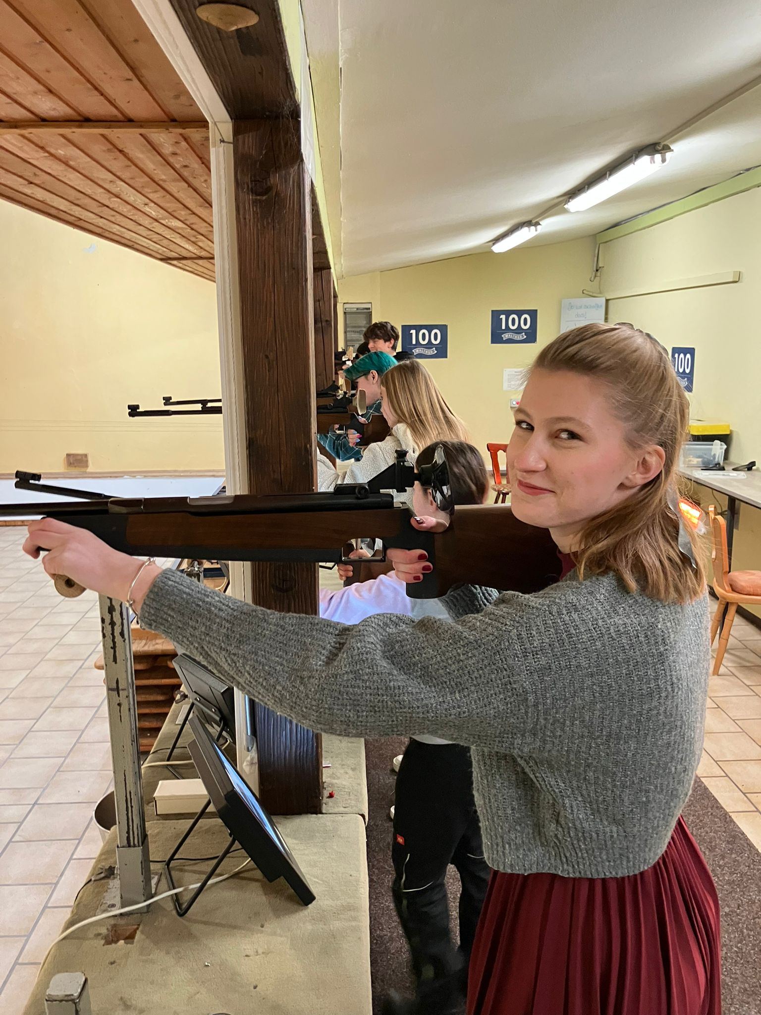 Unterbrochen wurde sie nur durch die Liveübertragung des Jugendpokalschießens. Die sieben anwesenden Jugendlichen durften innerhalb von 25 Minuten beliebig viele Probeschüsse machen und dann drei Wertungsschüsse abgeben. Geschossen wurde mit den alten Luftgewehren, aufgelegt und auf Zehntel-Wertung. Nach zwei Stechschüssen konnte sich Lilly Stach gegen Marie Papstein behaupten. Den dritten Platz belegt Emilia Seidel.