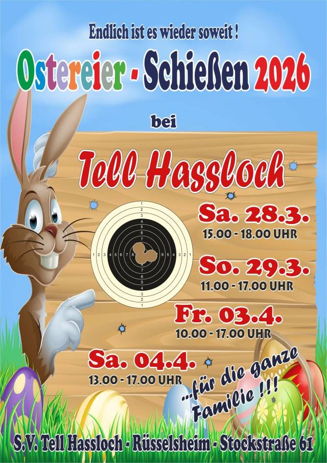Am Wochenende vor Ostern, sowie am Karfreitag und am Ostersamstag findet wieder unser traditionelles Ostereierschießen statt. Geschossen wird mit dem Luftgewehr, wobei man für jeden Treffer ins Schwarze ein Osterei bekommt. Für einen ''10er'' gibt es sogar zwei Eier.