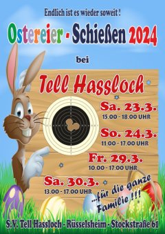 Am Wochenende vor Ostern, sowie am Karfreitag und am Ostersamstag findet wieder unser traditionelles Ostereierschießen statt. Geschossen wird mit dem Luftgewehr, wobei man für jeden Treffer ins Schwarze ein Osterei bekommt. Für einen ''10er'' gibt es sogar zwei Eier.
